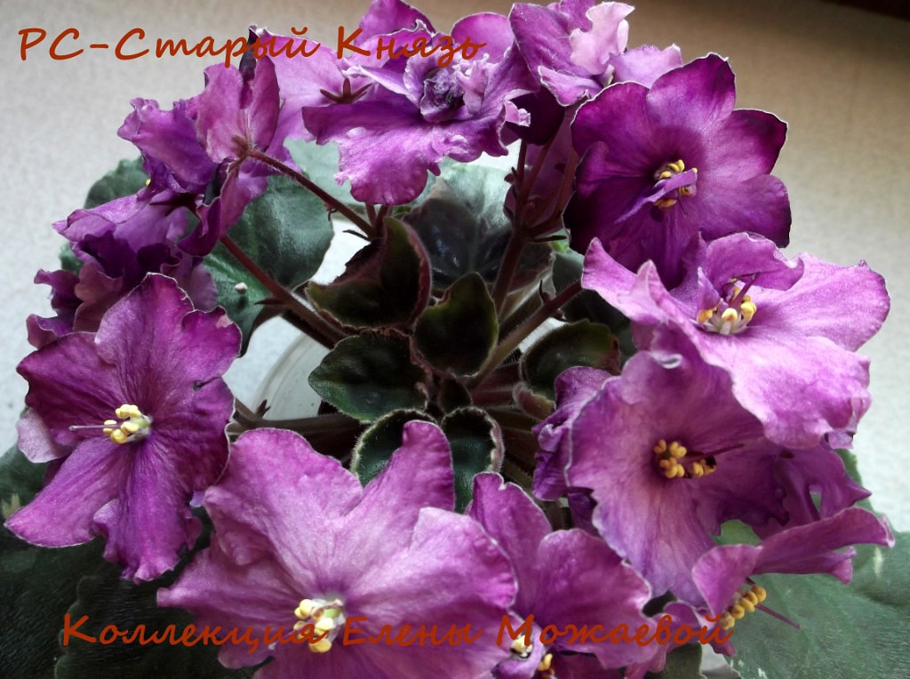Махровая лавандовая звезда с точками и штрихами темно-пурпурного фэнтези; маленькая темно-зеленая ровная листва. Мини